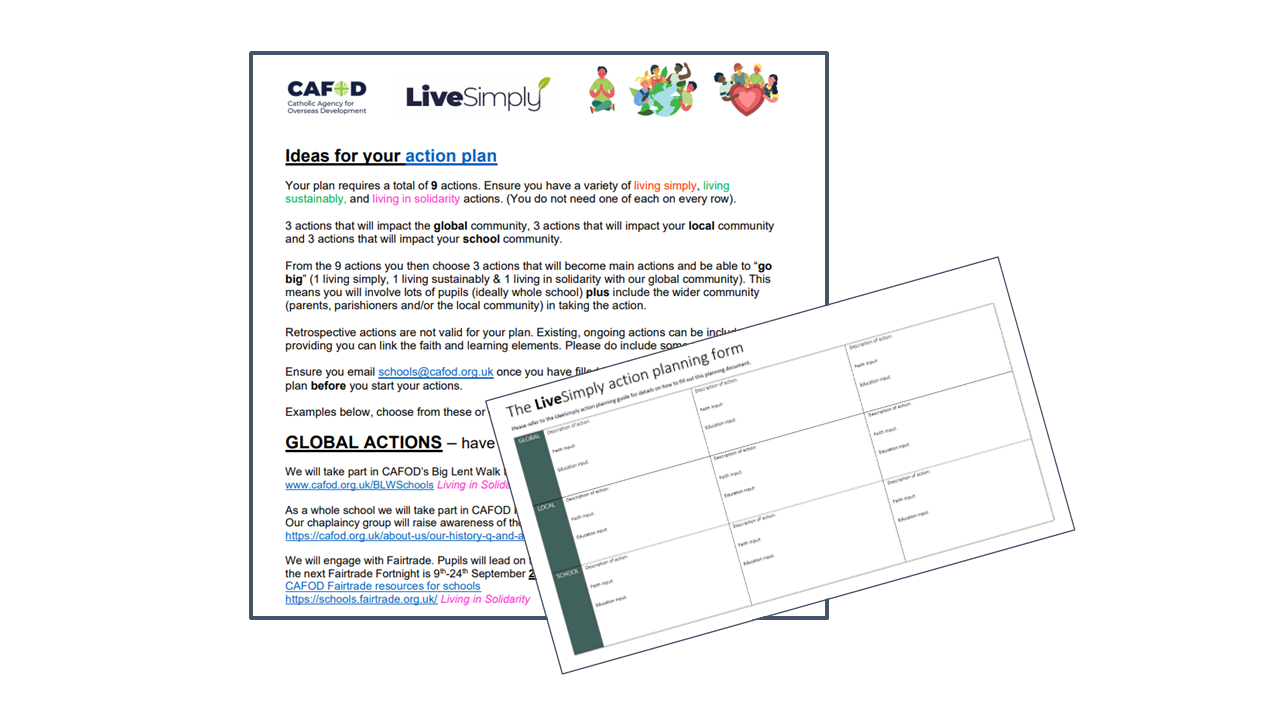 To apply for the LiveSimply award your school needs to sign up, register your action plan by submitting it online and then complete nine faith inspired actions. These will demonstrate you are living simply, sustainably and in solidarity with communities around the world experiencing poverty.