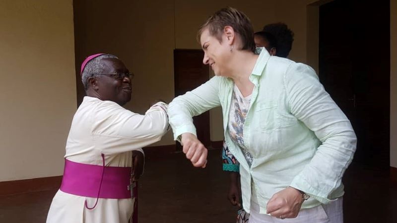 Africa - DR Congo - Christine Allen greeting the Archbishop of Bukavu